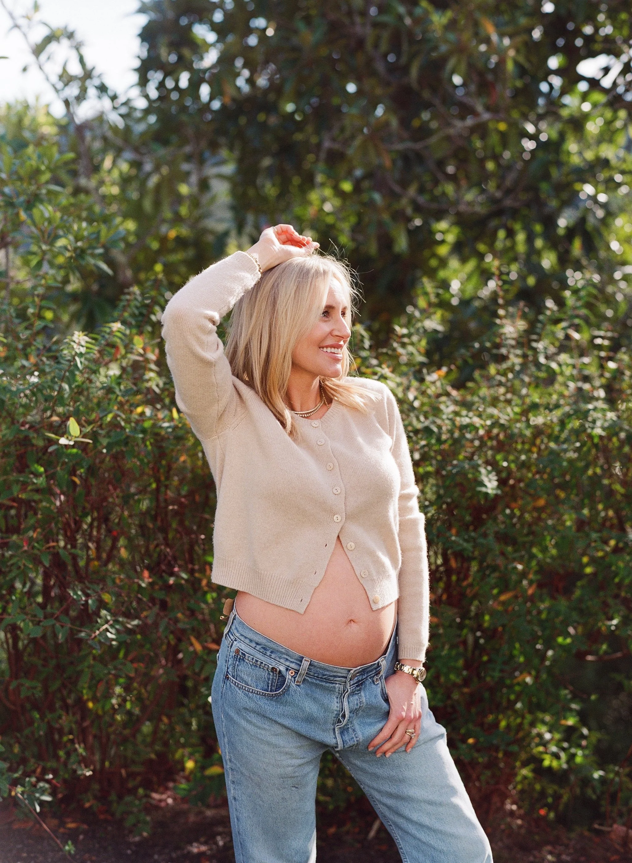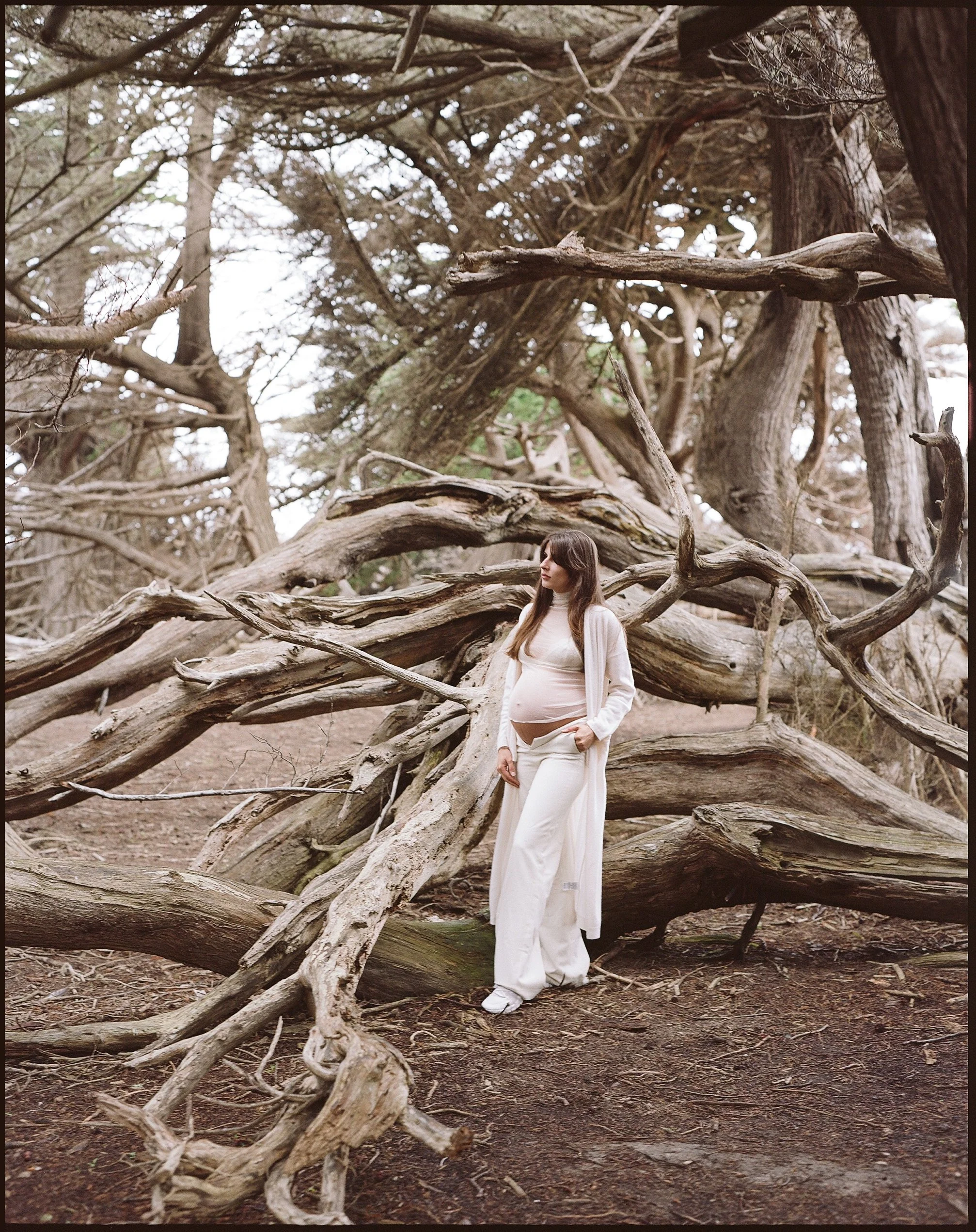 First or second trimester ideally. Not because of availability — because the best sittings are considered ones. Time to choose the location, the light, the feeling.